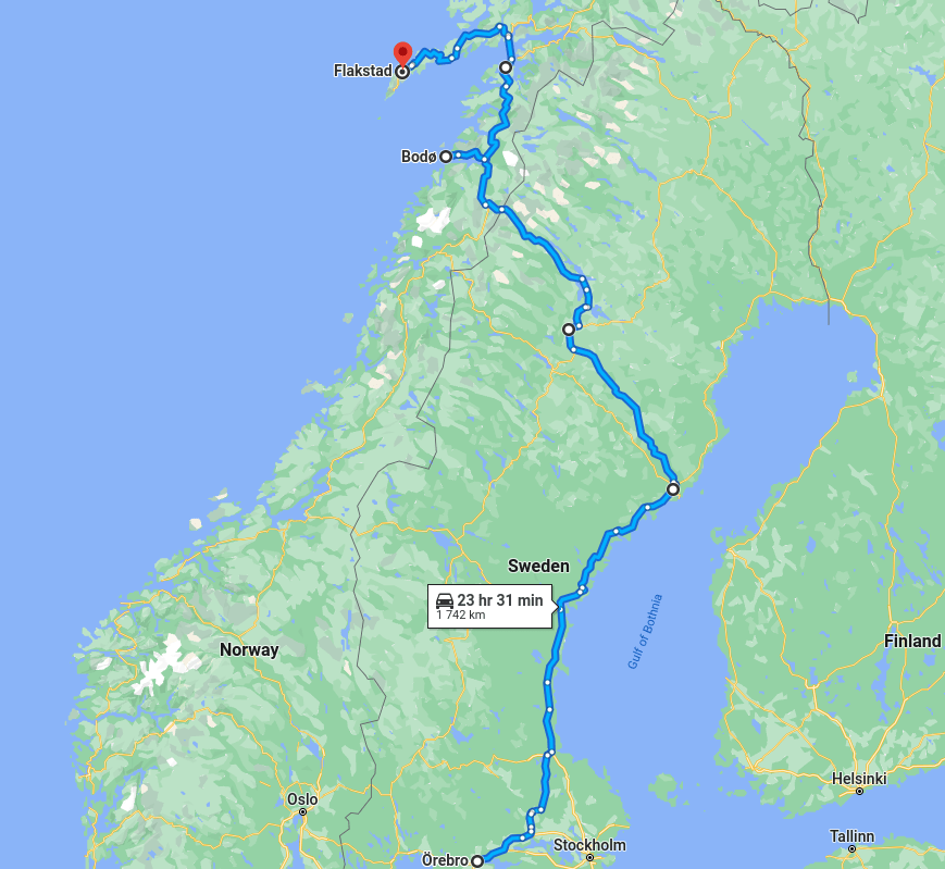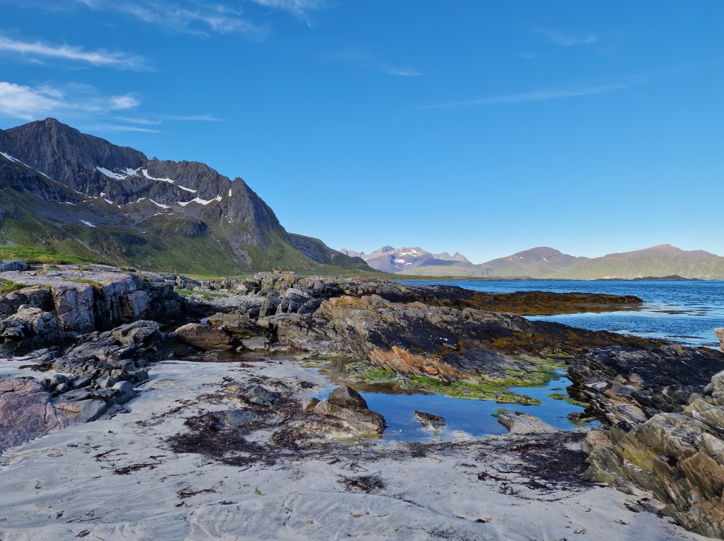 Still on Swedish side and approaching the Norwegian border.First picture in NorwayOn the ferry headed to LofotenApproaching Lodingen arbour On the way to FlakstadAstonishing beach but dead cold water. Midnight sunWhere we stayed (thank you Lars and Anna)NosfjordLast night in BodoFish soupShrimpsWhale carpaccio